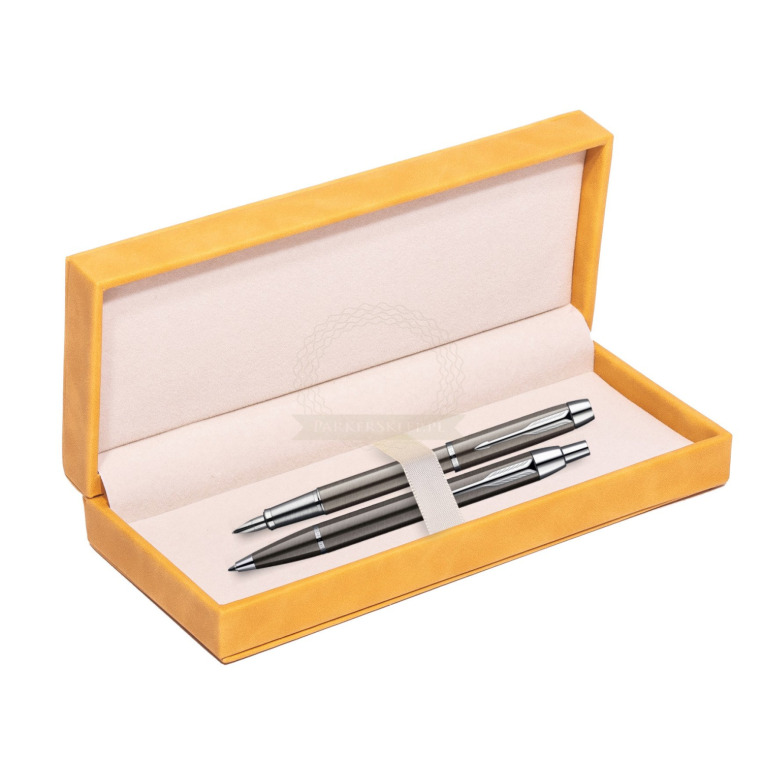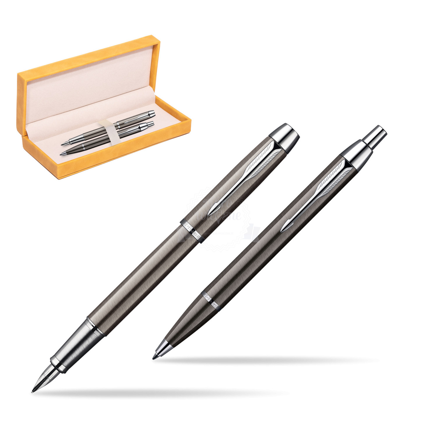 Zestaw prezentowy Parker pióro + długopis IM Gun Metal CT w żółtym pudełku zamszowym Parker IM