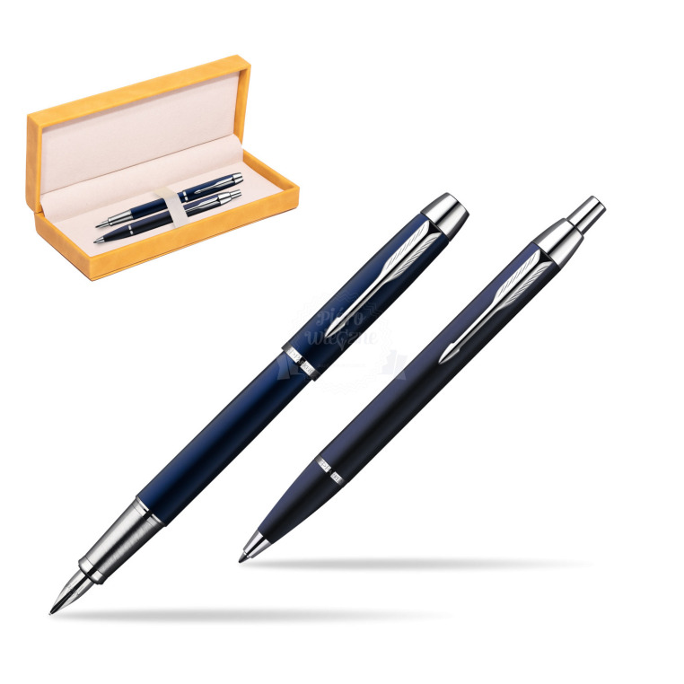 Zestaw prezentowy Parker pióro + długopis IM Niebieski CT w żółtym pudełku zamszowym Parker IM