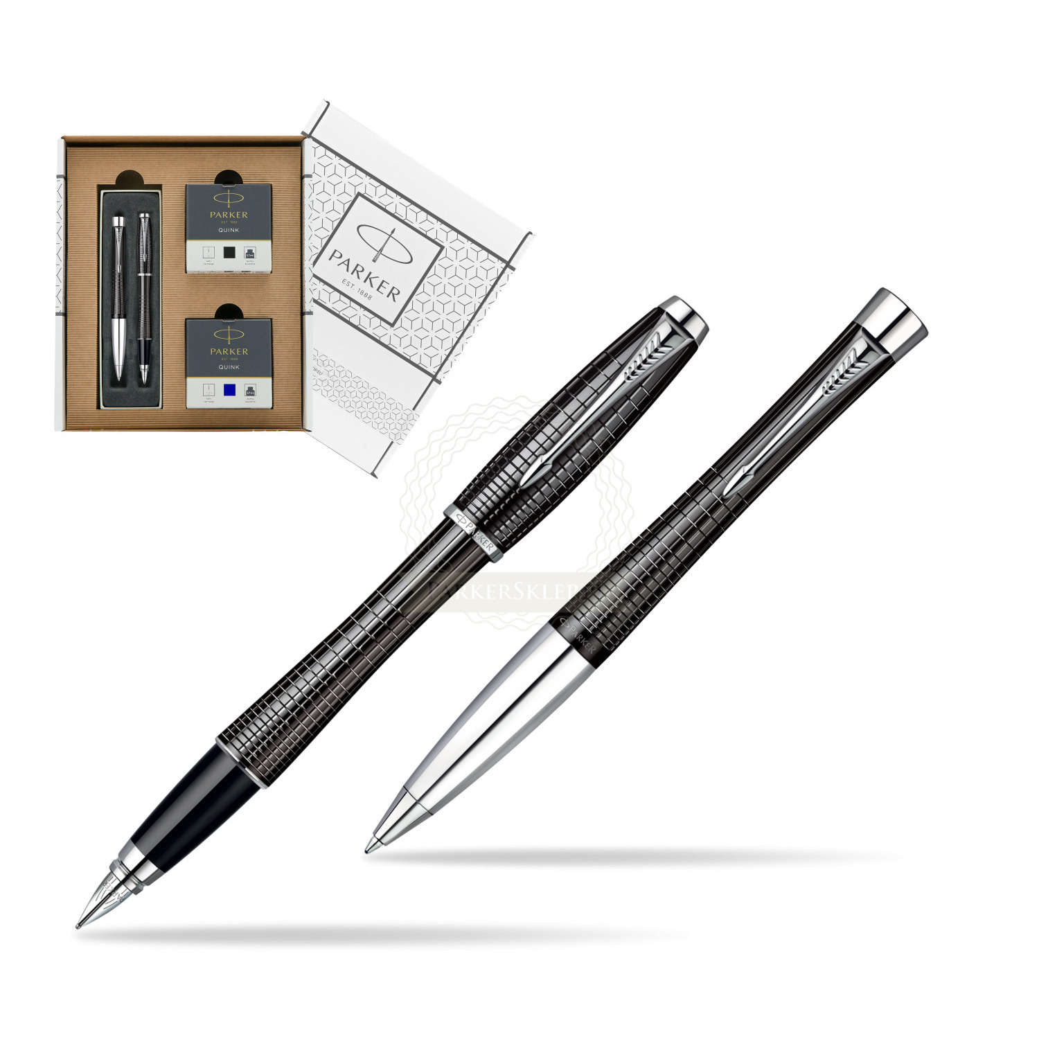 Zestaw prezentowy Parker Pióro + Długopis Parker Urban Premium Hebanowy Metal w białym pudełko Parker Eco Urban Premium