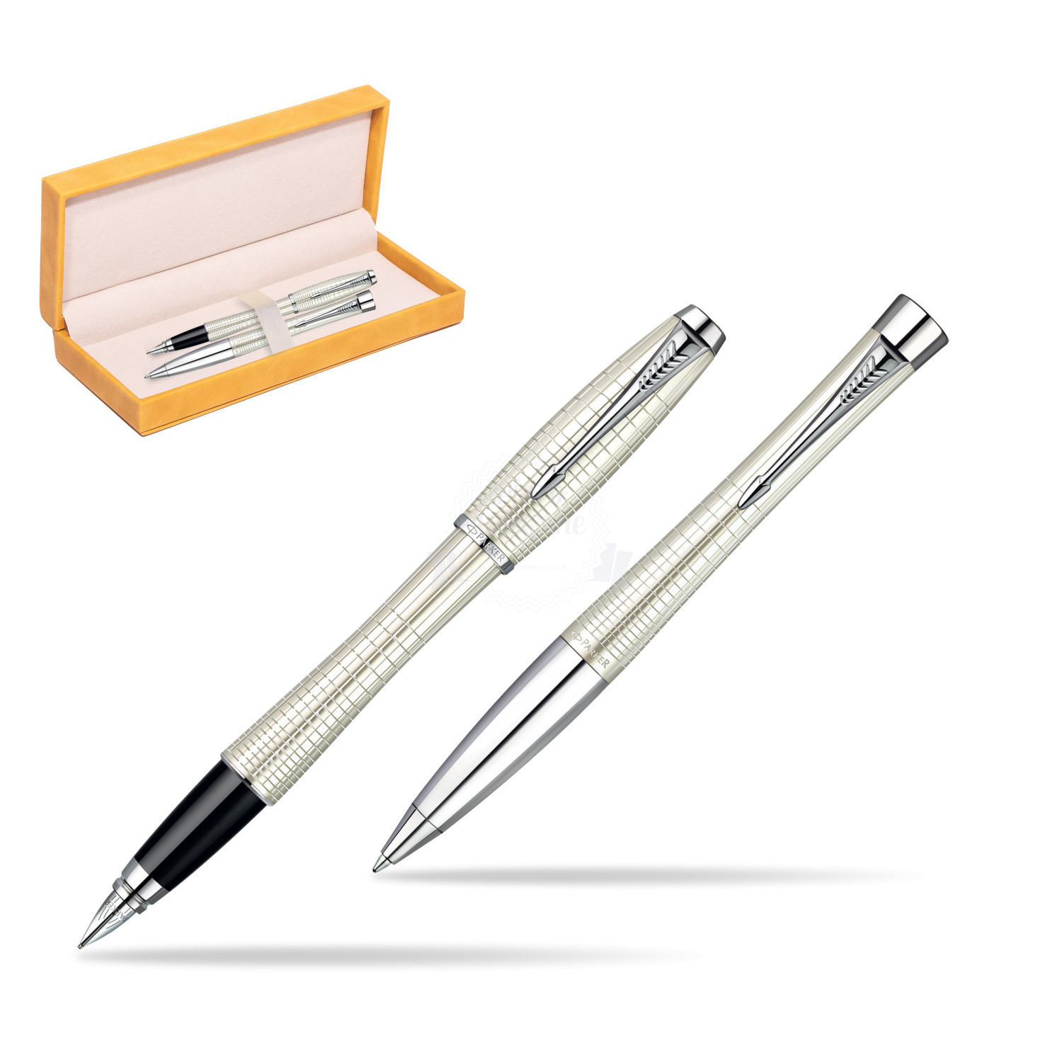 Zestaw prezentowy Parker Pióro + Długopis Parker Urban Premium Metaliczny Perłowy w żółtym pudełku zamszowym Urban Premium