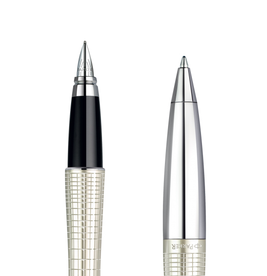 Różnice pomiędzy piórem kulkowym a wiecznym są duże. Jeżeli chodzi o wygląd zewnętrzny, przy zamkniętych piórach, produkty nie różnią się niczym (oba posiadają skuwkę). Główna różnica leży w części przedniej po zdjęciu skuwki. Pióra wieczne Parker posiadają stalówkę w kształcie grotu strzały, w której znajduje się rowek, przez który przepływa atrament z tłoczka lub naboju umieszczonego w środku pióra. Pióra kulkowe Parker, posiadają wkład i końcówkę zbliżoną wyglądem do końcówki długopisu. Pasują do nich wymienne wkłady zakończone malutką kuleczką (wkłady do piór kulkowych są nieco dłuższe od długopisowych). Pióro kulkowe to kompromis pomiędzy piórem wiecznym a długopisem, jest zatem bezpieczniejsze niż pióro wieczne jeżeli chodzi o rozmazywanie tekstu przez osoby nieobyte z pisaniem piórem wiecznym Parker.