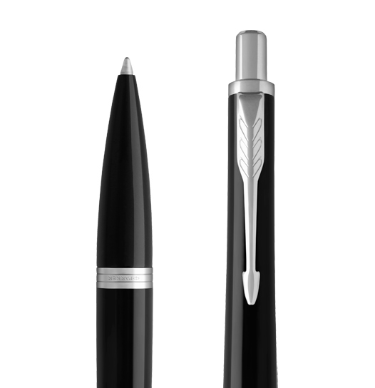 Gustowny długopis Parker Urban łączy prostotę czarnego koloru z wyrafinowanym kształtem oraz chromowanymi wykończeniami. Czarny błyszczący lakier i polerowane wykończenia pierścieni podkreślają wysoką jakość produktu. Pierścienie wykonane są ze stali nierdzewnej, wykończenia chromowane. Korpus wykonany z mosiądzu lakierowany czarnym lakierem. Sekcja przednia wykonana z czarnego tworzywa sztucznego i polerowana. Wyposażony w przyciskowy mechanizm wysuwania wkładu. Do długopisu pasują wkłady quink flow oraz wkłady żelowe. W opakowaniu prezentowym Parker. UWAGA: Wkład do pióra jest pod spodem dna pudełka.