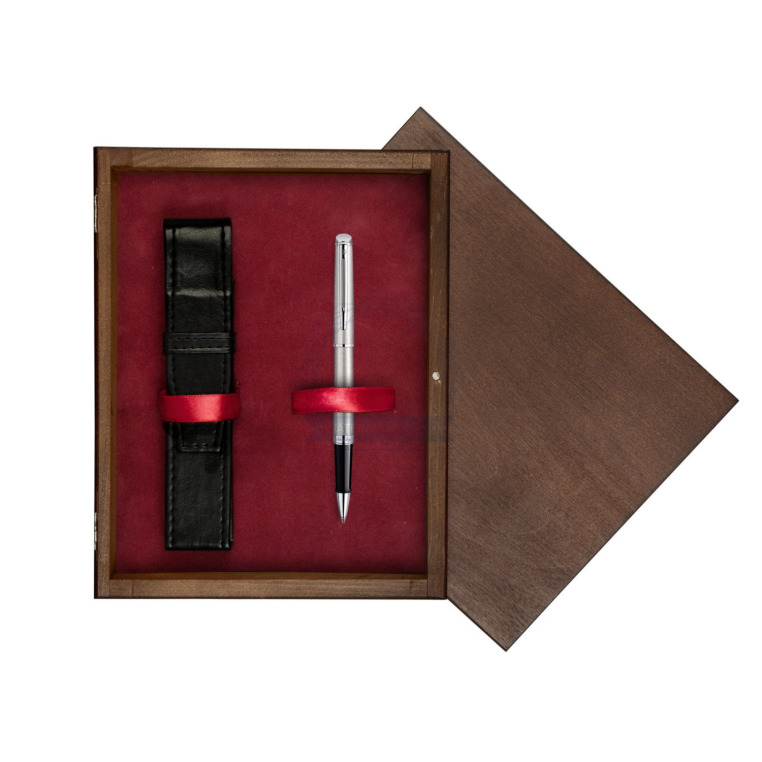 Pióro kulkowe Waterman Hémisphère Stalowa CT w pudełku drewnianym Wenge Single Bordo Hémisphère