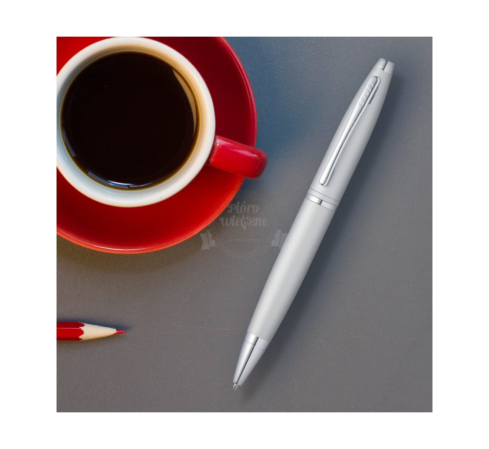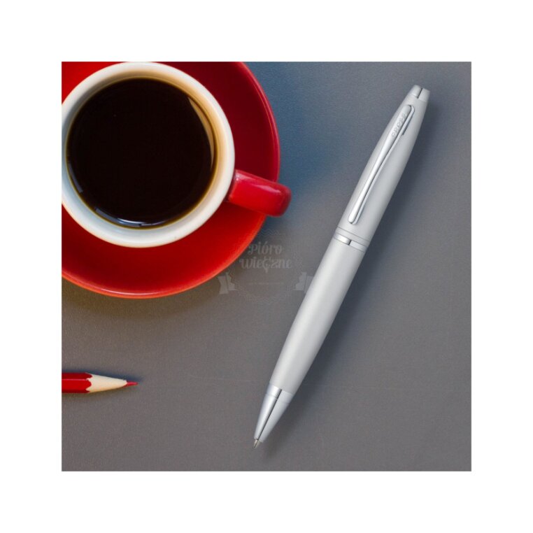Długopis Cross® Calais Satynowy Chrom CT posiada polerowaną satynowo-chromową bazę z chromowymi wykończeniami.