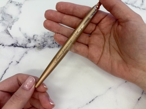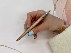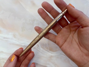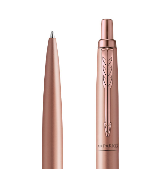Monochromatyczne wykończenie długopisu Jotter XL Rose Gold w odcieniu różowego złota jest kultowe w najmniejszym szczególe: od efektownej matowej nasadki i korpusu po charakterystyczny klips w kształcie strzałki i przycisk, których połysk dopełnia całości.