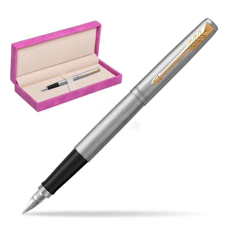 Pióro wieczne Parker Jotter Stal Matowa GT w pudełku zamszowym fuksja Jotter