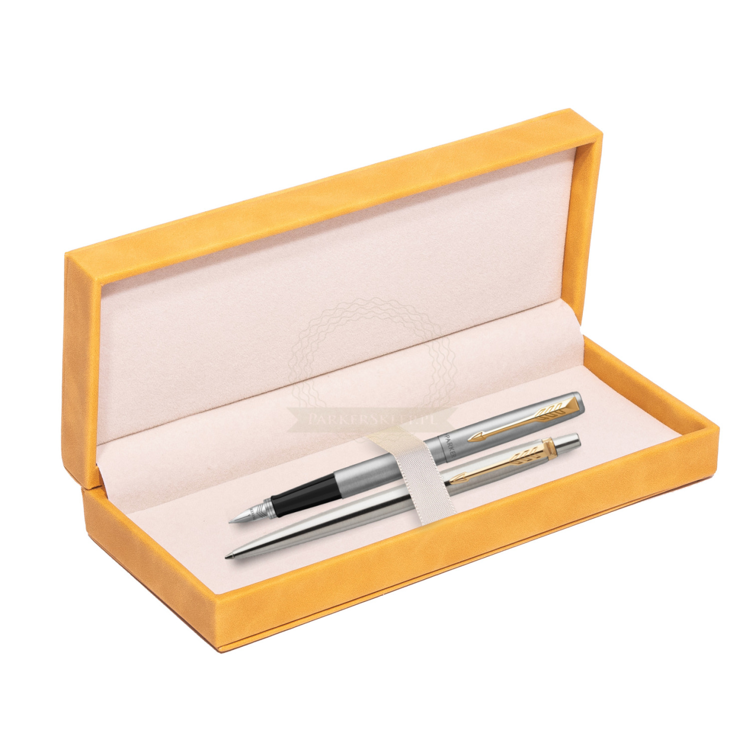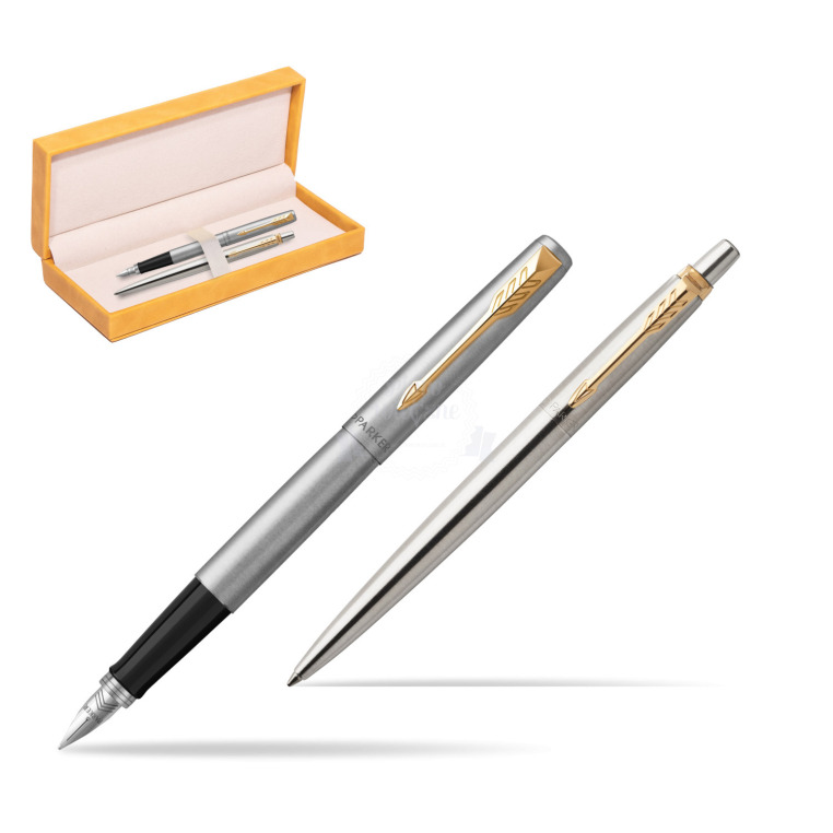 Zestaw prezentowy Parker Pióro + Długopis Jotter Stalowy GT w żółtym pudełku zamszowym JOTTER
