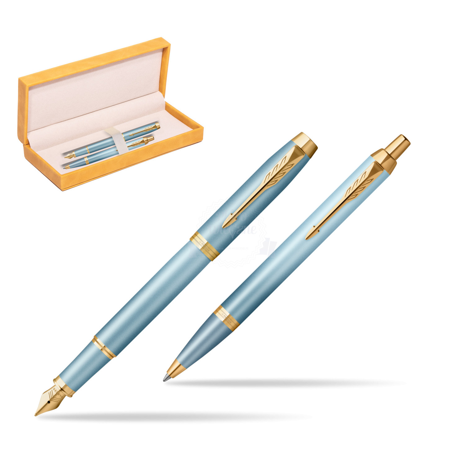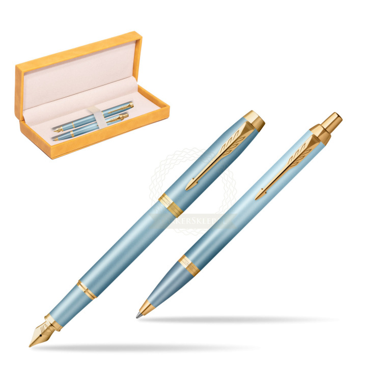 Zestaw Prezentowy Parker Pióro wieczne + Długopis IM RITUALS TURQUOISE GREEN GT w żółtym pudełku zamszowym IM