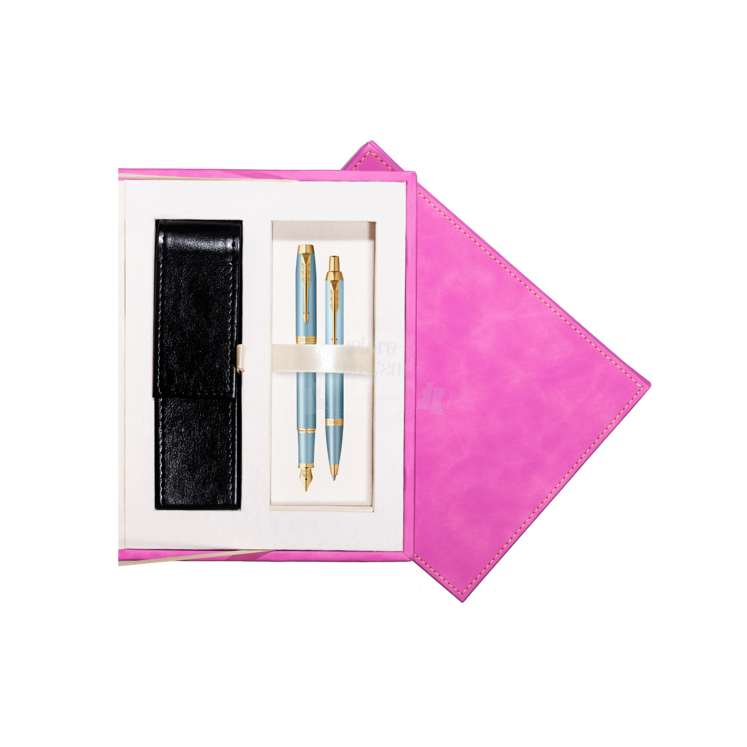 Zestaw Prezentowy Parker Pióro wieczne + Długopis IM RITUALS TURQUOISE GREEN GT w pudełku zamszowym fuksja IM