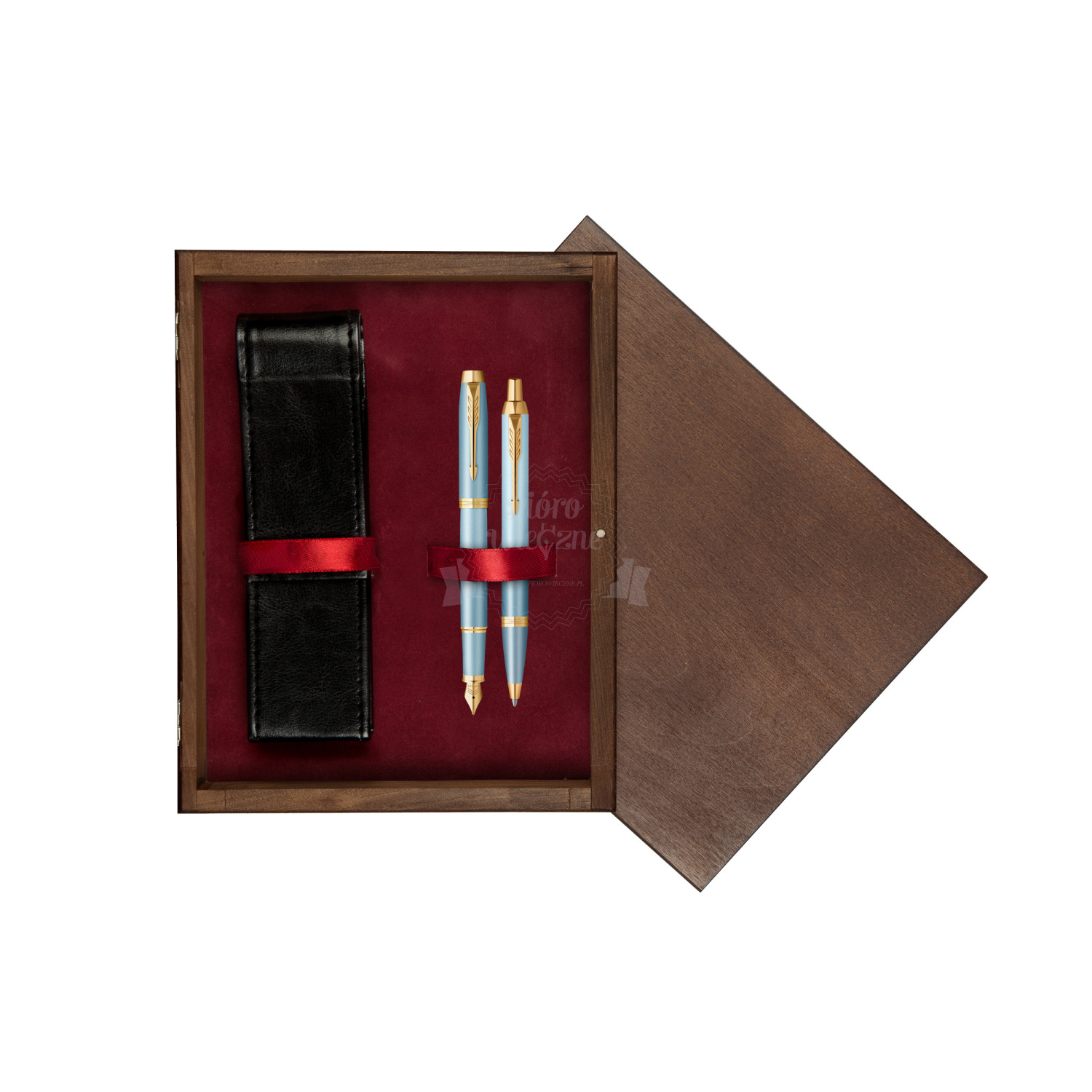 Zestaw Prezentowy Parker Pióro wieczne + Długopis IM RITUALS TURQUOISE GREEN GT w pudełku drewnianym Wenge Double Bordo IM