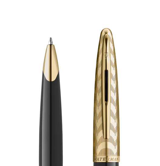 Wielka opera inspiruje publiczność od wieków; teraz przyszła kolej na ekskluzywną Kolekcję Waterman Opera. Zaokrąglone, smukłe kształty Carène i intensywny, czarny lakier korpusu doskonale uzupełniają wyrafinowaną, pokrytą złotem nasadkę z wygrawerowanym, inspirowanym tradycją wzorem marki, odzwierciedlając wyszukany artyzm opery. Specjalnie zaprojektowana końcówka długopisu pozostawia nieskazitelne, szybko schnące linie i dopełniona jest charakterystycznym, rozdwojonym klipem powleczonym złotem, który podkreśla wyrafinowaną elegancję przyboru. Każdy przybór jest starannie ręcznie składany we Francji, eksponując francuskie rzemiosło marki Waterman.