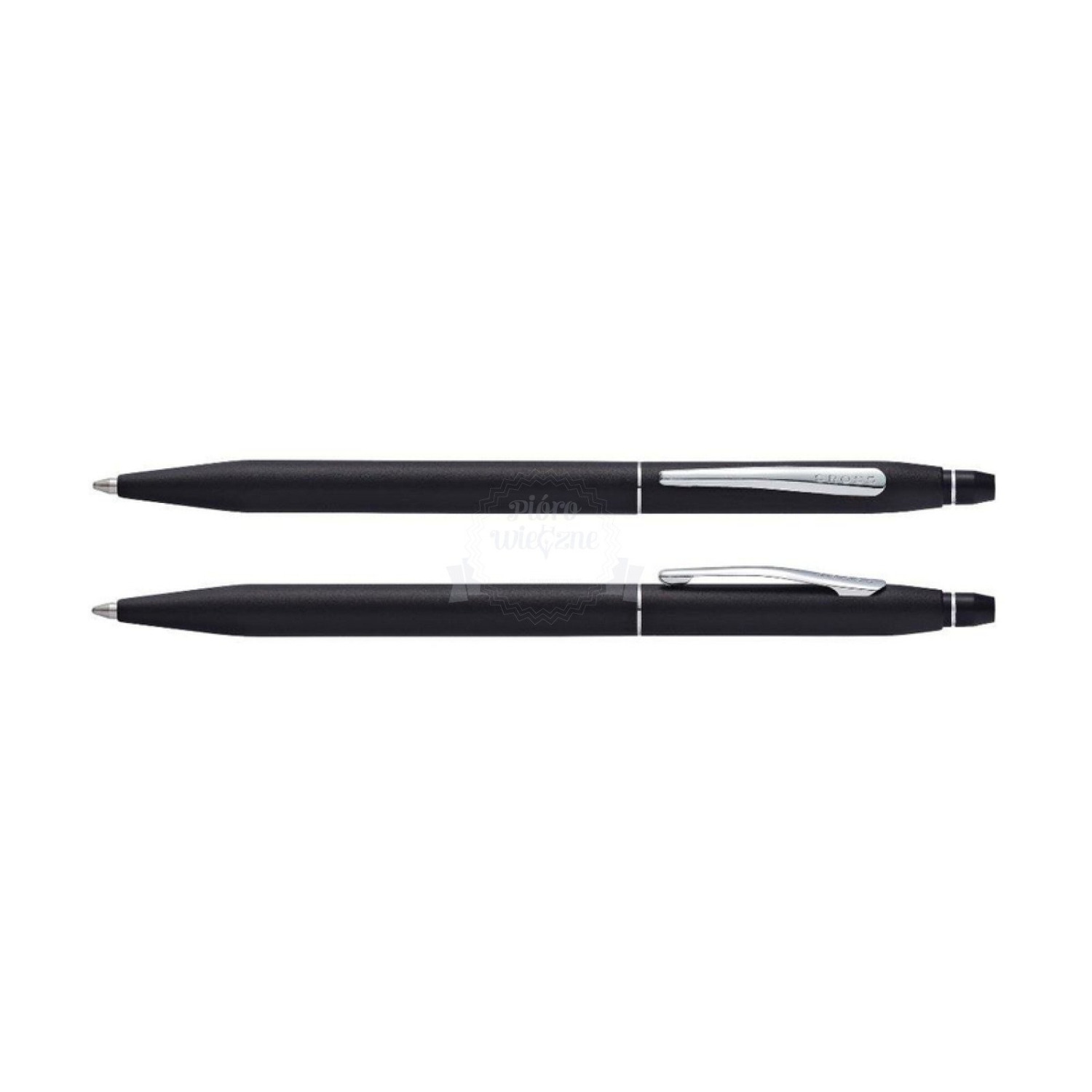 Długopis i ołówek Cross Click posiada lakierowany korpus w kolorze czarnym, elementy chromowane. Produkt zapakowano w etui premium.
