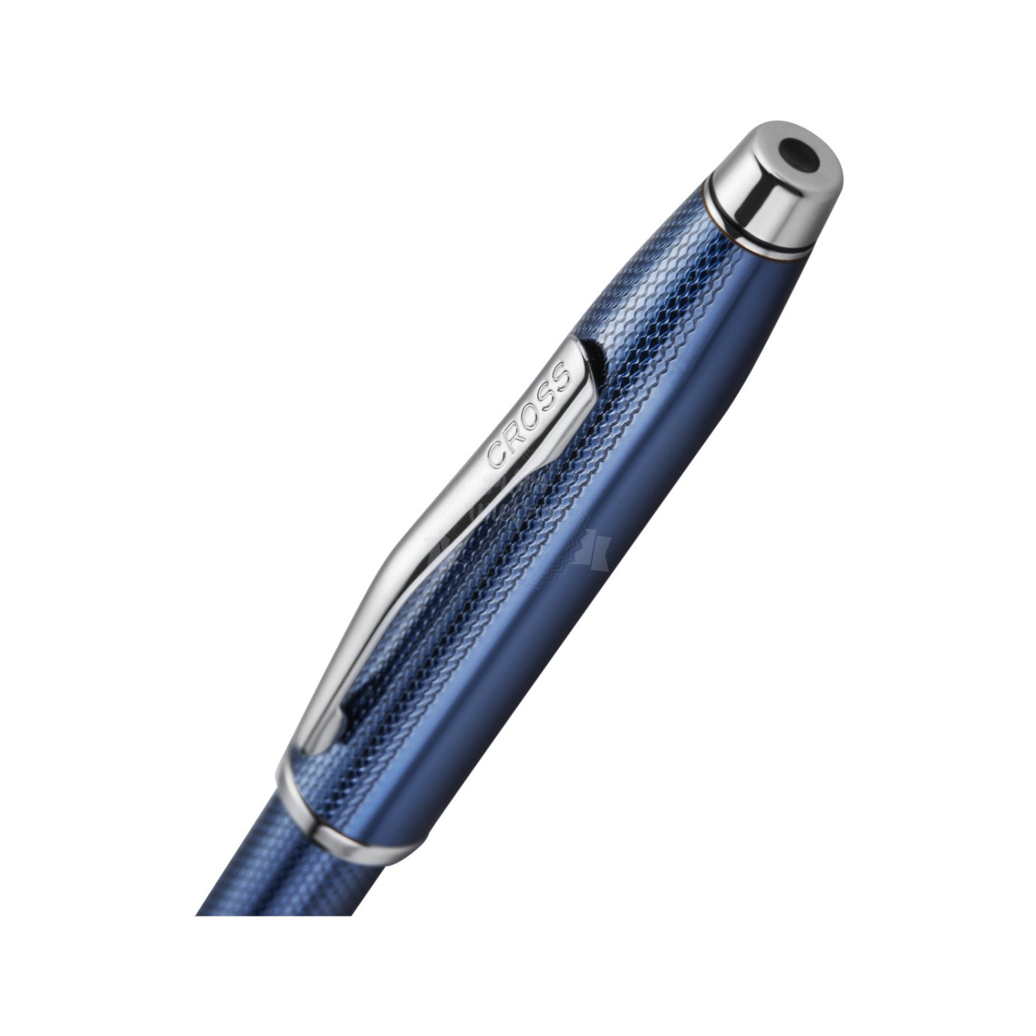 Długopis Cross to długopis z prestiżowej serii Century II, stanowiący odważniejszą i szerszą wersję klasycznego modelu Century. Jego korpus zachwyca głębokim, lśniącym, półprzezroczystym kobaltowym błękitem, który subtelnie mieni się pod wpływem światła. Na powierzchni korpusu misternie wygrawerowano diamentowy (romboidalny) wzór, dodający eleganckiej faktury i nowoczesnego charakteru. Całość dopełniają polerowane, chromowane detale, takie jak klips i pierścień, które tworzą z kobaltowym błękitem harmonijną kompozycję. Długopis posiada precyzyjnie wyważony i doważony korpus, co zapewnia wyjątkowy komfort pisania. Mechanizm obrotowy gwarantuje płynne wysuwanie i chowanie wkładu, co podnosi wygodę użytkowania.