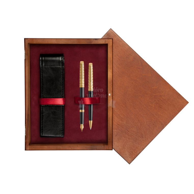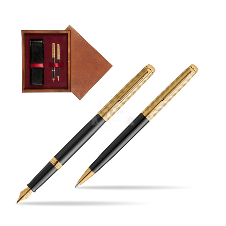 Zestaw prezentowy Pióro wieczne + długopis Waterman Hémisphère OPERA Collection w pudełku drewnianym Mahoń Double Bordo OPERA Collection