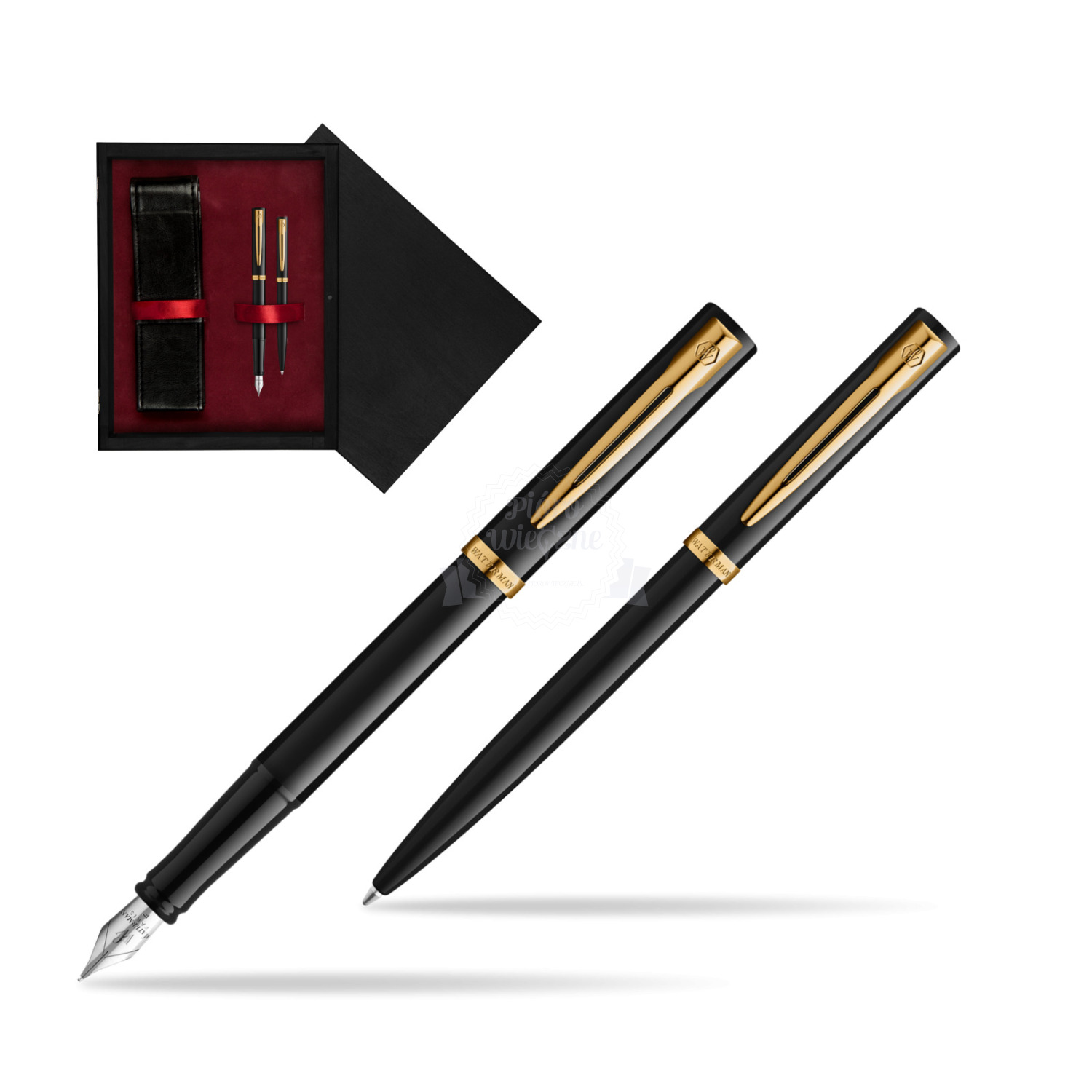 Zestaw prezentowy pióro wieczne + długopis Waterman IMPRESSION czarne GT w pudełku drewnianym Czerń Double Bordo impression