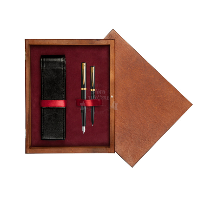 Zestaw prezentowy pióro wieczne + długopis Waterman IMPRESSION czarne GT w pudełku drewnianym Mahoń Double Bordo impression