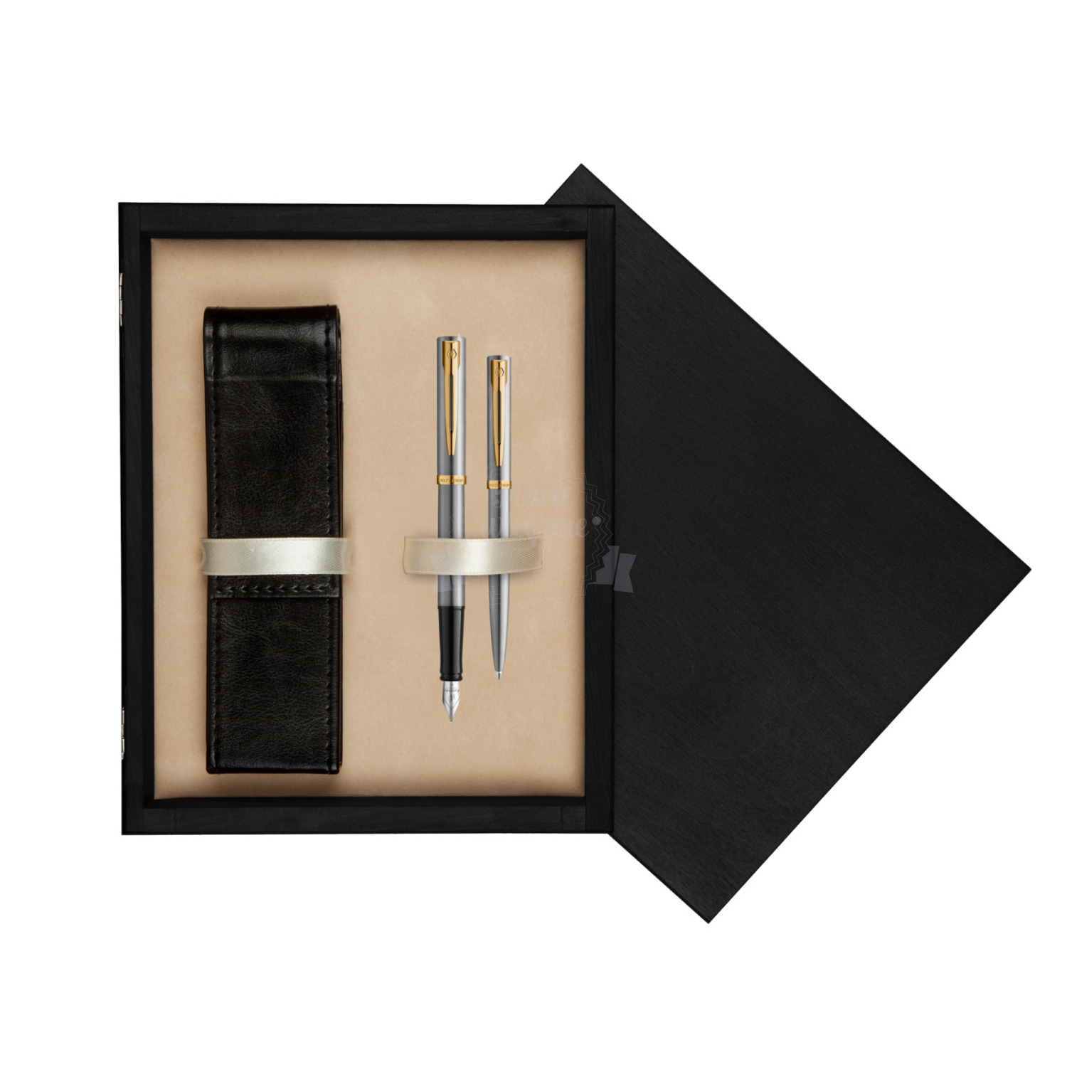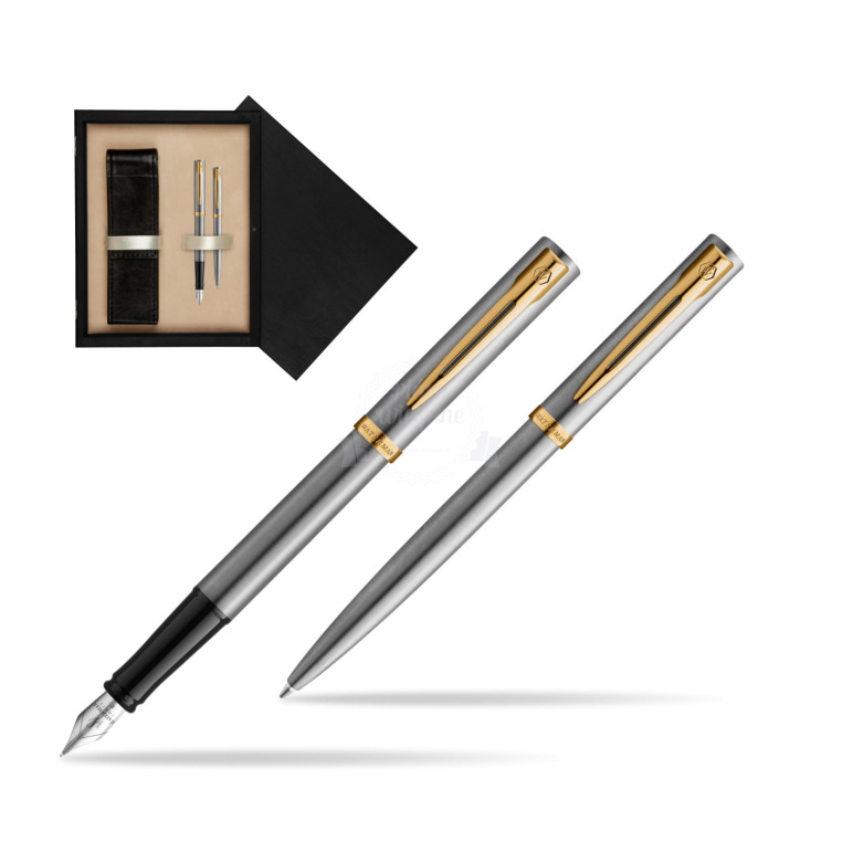 Zestaw prezentowy pióro wieczne + długopis Waterman IMPRESSION Stal GT w pudełku drewnianym Czerń Double Ecru impression