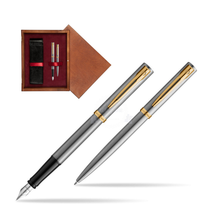 Zestaw prezentowy pióro wieczne + długopis Waterman IMPRESSION Stal GT w pudełku drewnianym Mahoń Double Bordo impression