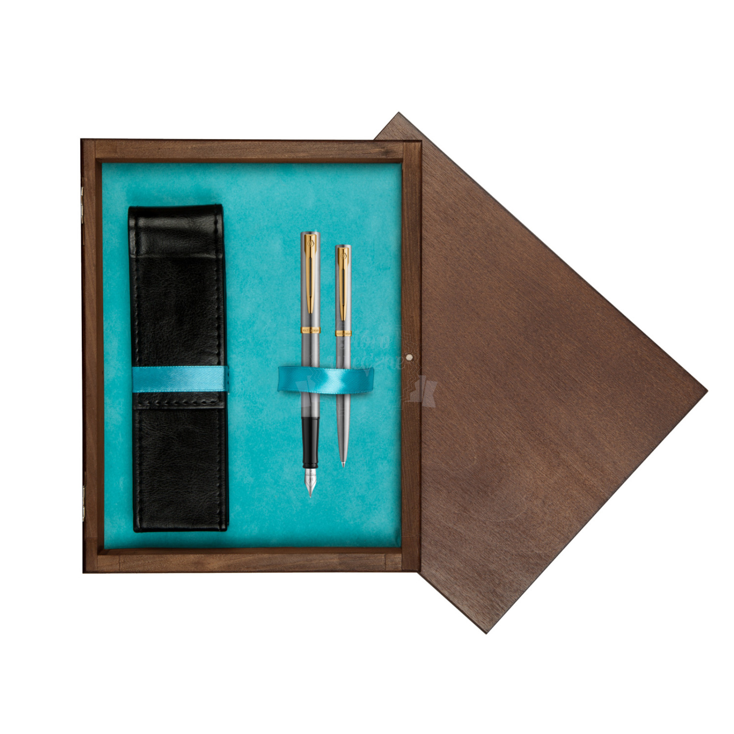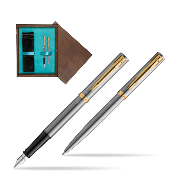 Zestaw prezentowy pióro wieczne + długopis Waterman IMPRESSION Stal GT w pudełku drewnianym Wenge Double Turkus impression