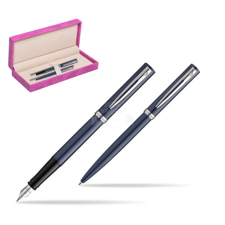 Zestaw prezentowy pióro wieczne + długopis Waterman IMPRESSION Granatowy CT w pudełku zamszowym fuksja impression