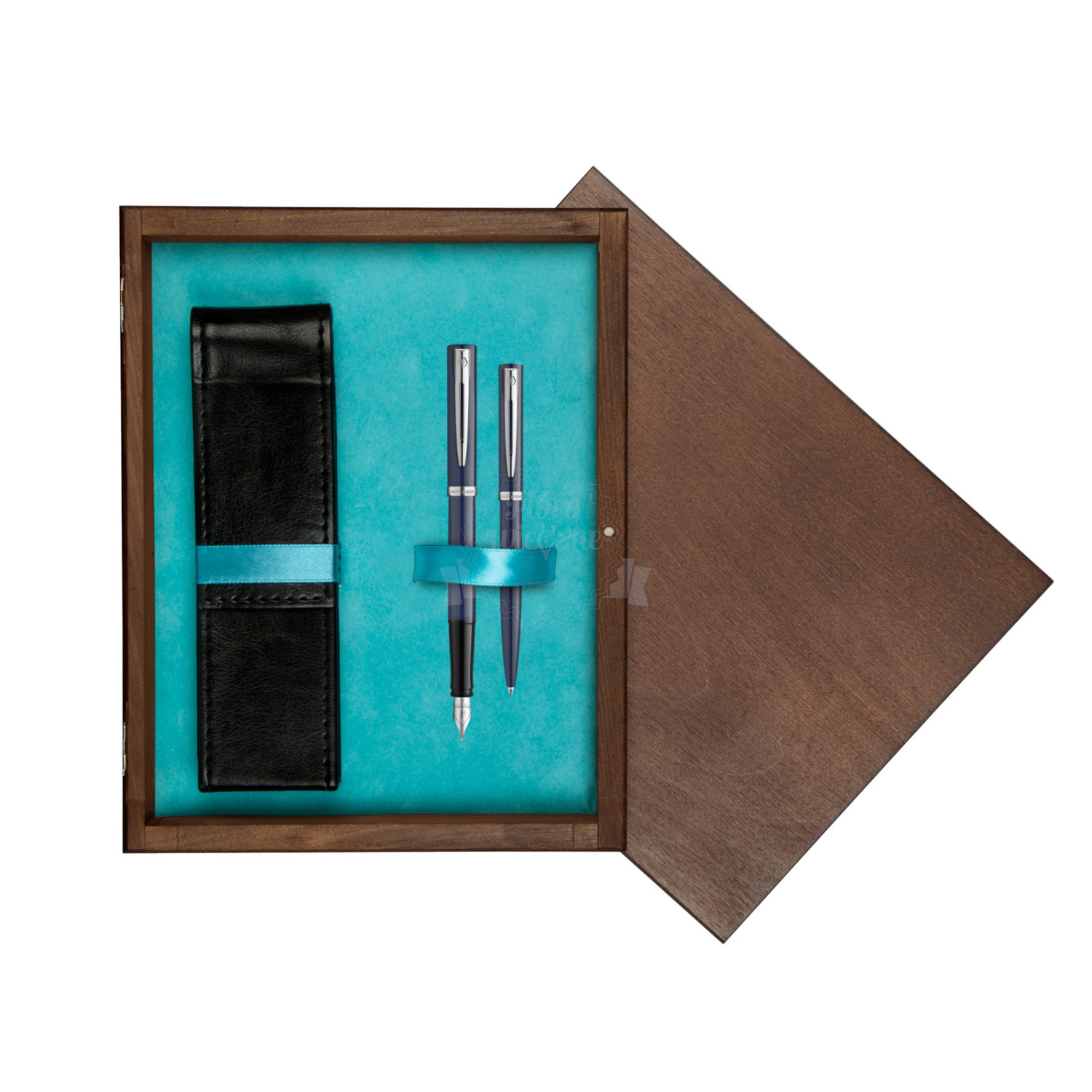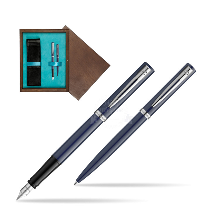 Zestaw prezentowy pióro wieczne + długopis Waterman IMPRESSION Granatowy CT w pudełku drewnianym Wenge Double Turkus impression