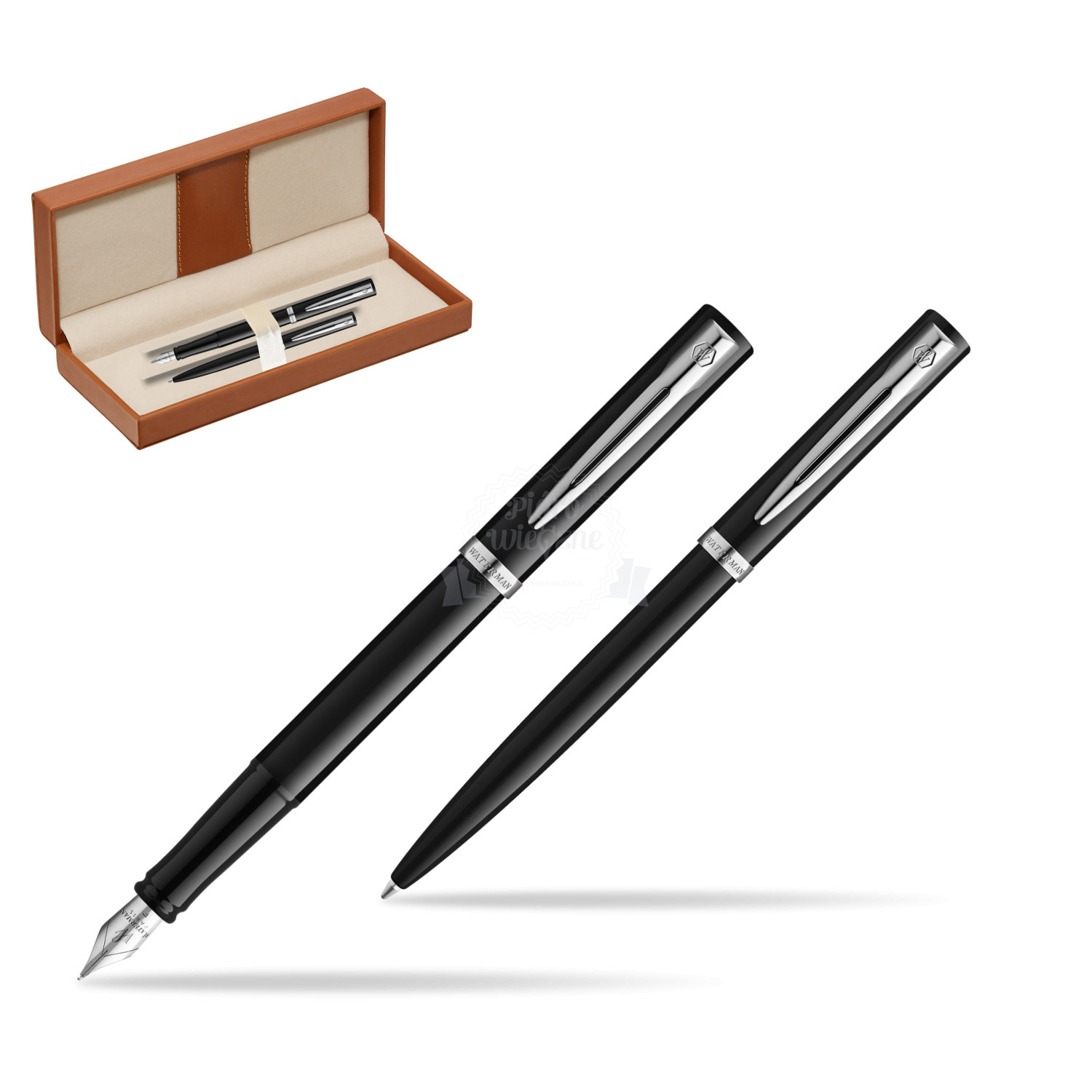 Zestaw prezentowy pióro wieczne + długopis Waterman IMPRESSION czarne CT w pudełku classic brown IMPRESSION