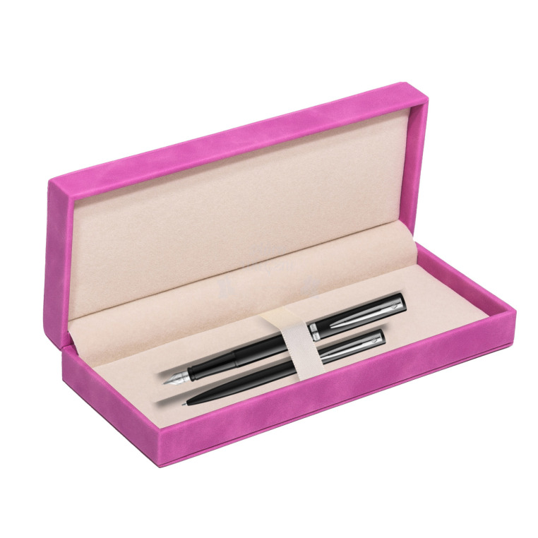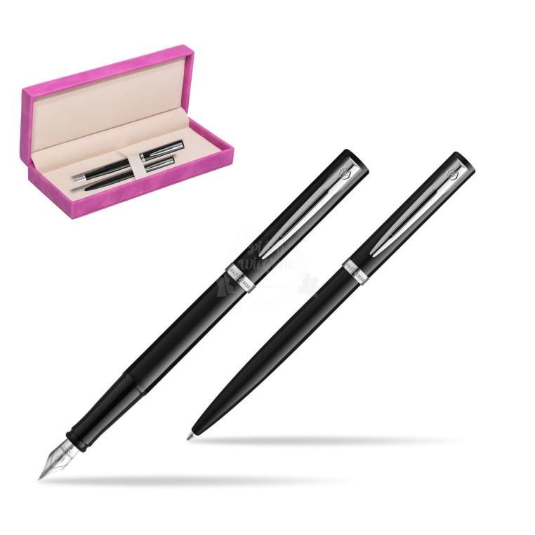 Zestaw prezentowy pióro wieczne + długopis Waterman IMPRESSION czarne CT w pudełku zamszowym fuksja IMPRESSION