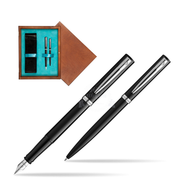 Zestaw prezentowy pióro wieczne + długopis Waterman IMPRESSION czarne CT w pudełku drewnianym Mahoń Double Turkus IMPRESSION