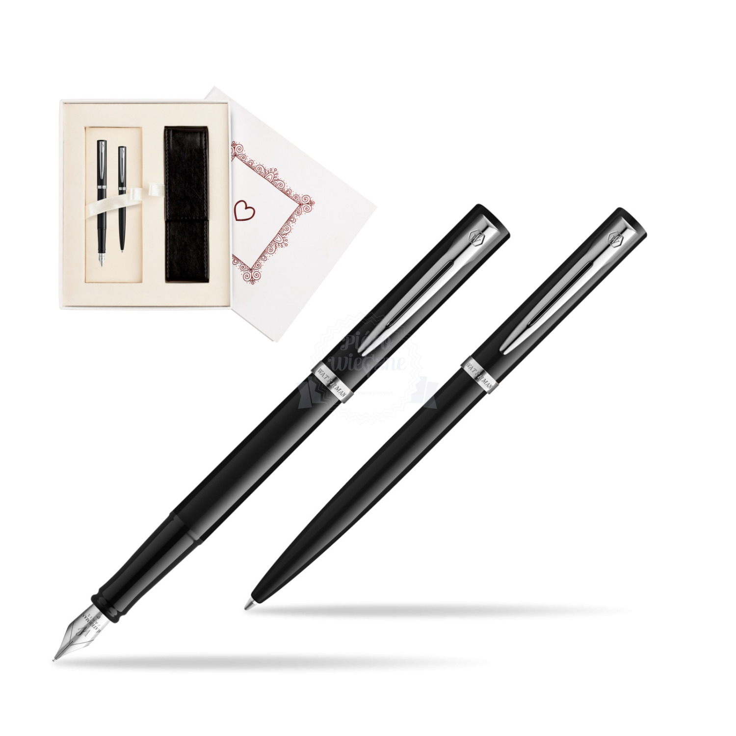 Zestaw prezentowy pióro wieczne + długopis Waterman IMPRESSION czarne CT w pudełku Biel Od Serca IMPRESSION