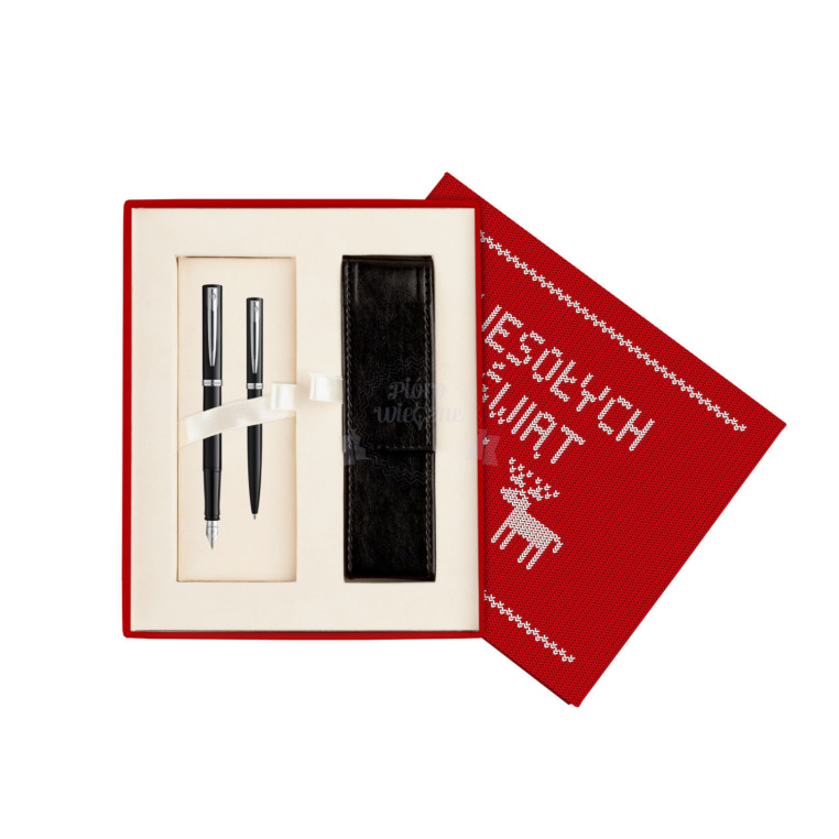 Zestaw prezentowy pióro wieczne + długopis Waterman IMPRESSION czarne CT w pudełku Wesołych Świąt czerwone IMPRESSION