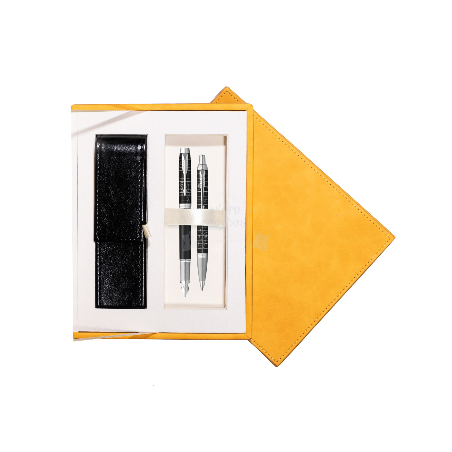 Zestaw prezentowy Parker pióro wieczne + długopis PREMIUM LEGACY OF FLIGHT w żółtym pudełku zamszowym IM