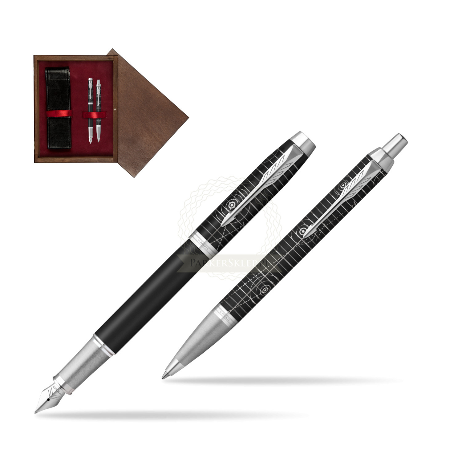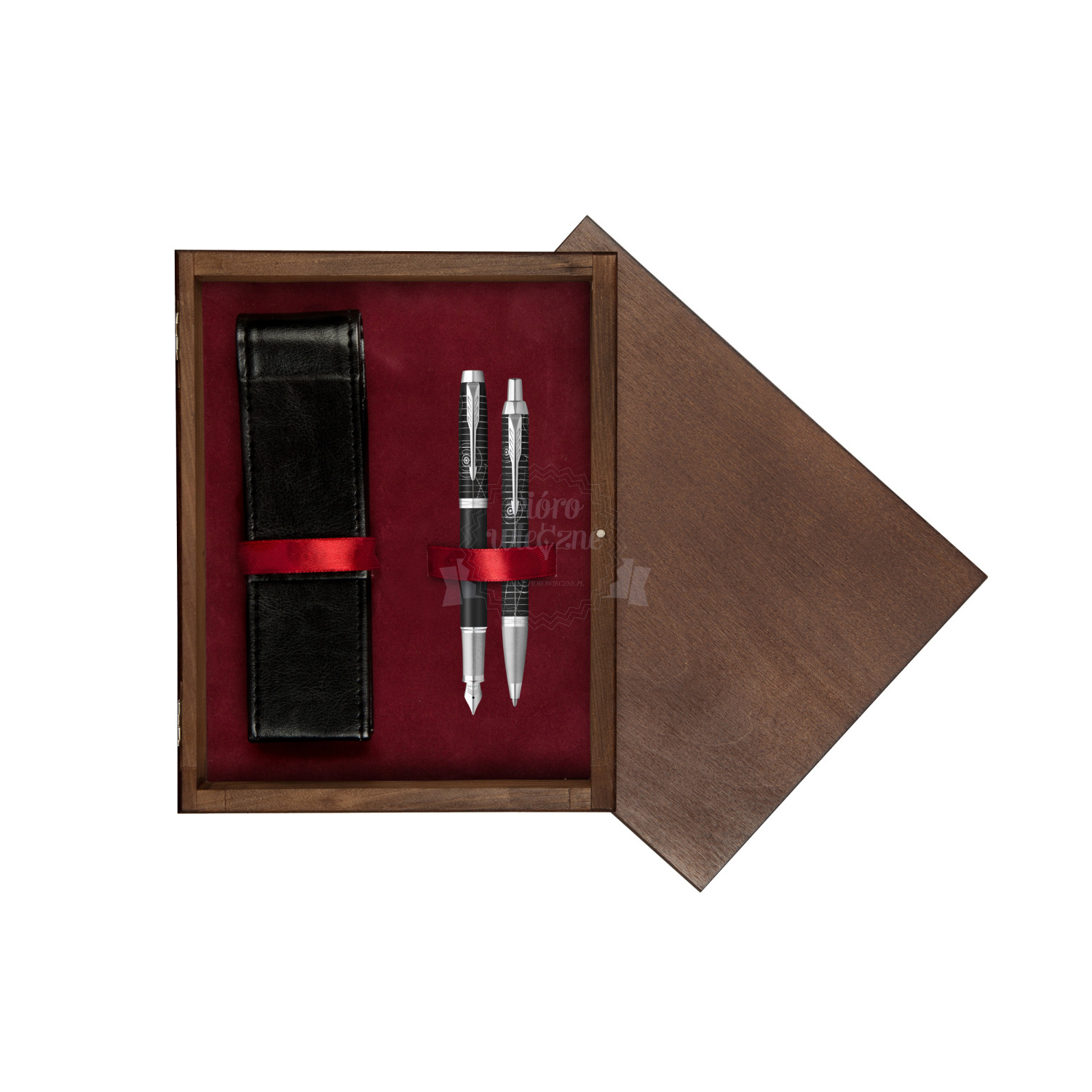 Zestaw prezentowy Parker pióro wieczne + długopis PREMIUM LEGACY OF FLIGHT w pudełku drewnianym Wenge Double Bordo IM
