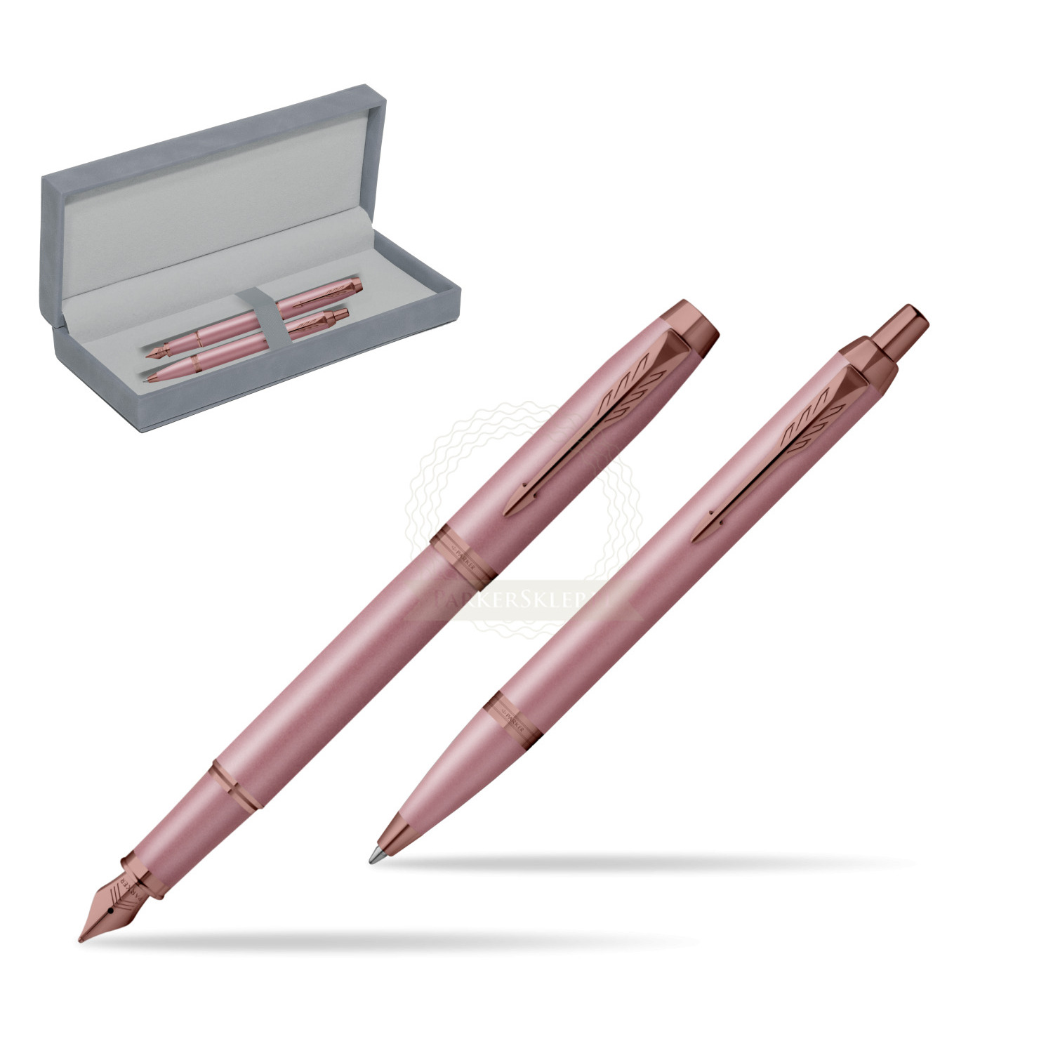 Zestaw Parker Pióro wieczne + Długopis IM RITUALS MAUVE w szarym pudełku zamszowym IM