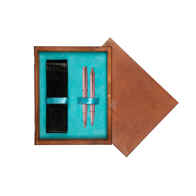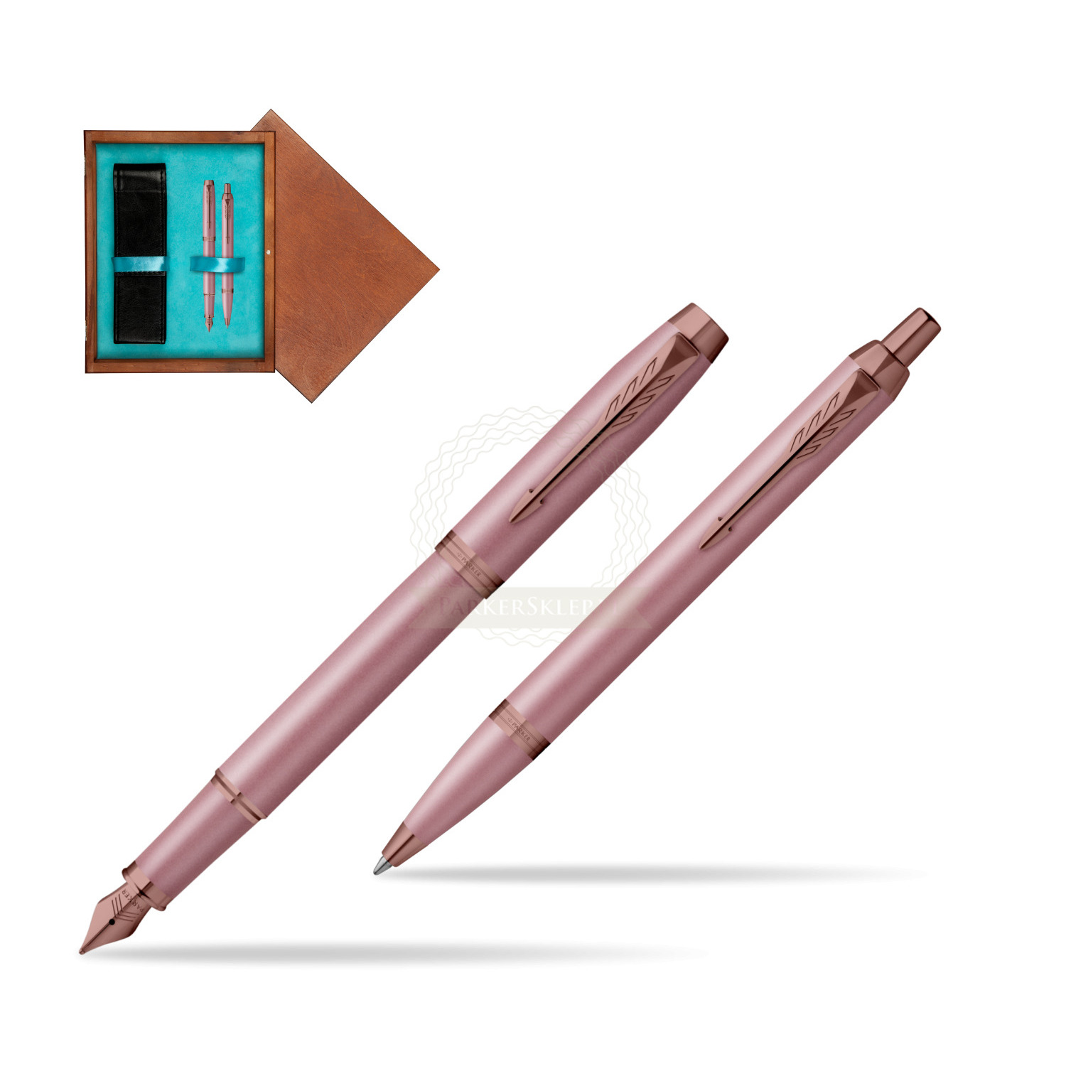 Zestaw Parker Pióro wieczne + Długopis IM RITUALS MAUVE w pudełku drewnianym Mahoń Double Turkus IM