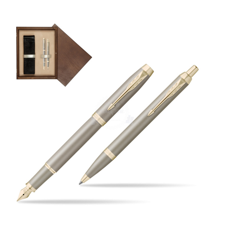 Zestaw Parker Pióro wieczne + Długopis IM RITUALS SANDSTONE w pudełku drewnianym Wenge Double Ecru IM