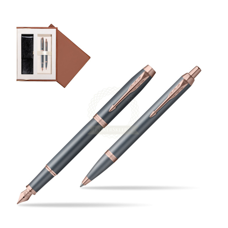 Zestaw Parker Pióro wieczne + Długopis IM TURQUOISE SLATE w brązowym pudełku zamszowym IM