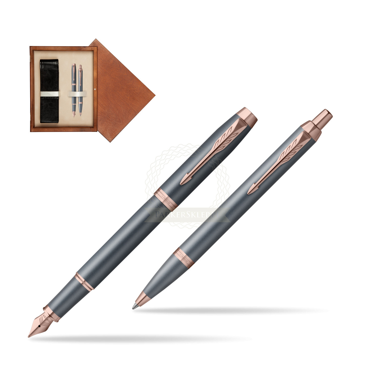 Zestaw Parker Pióro wieczne + Długopis IM TURQUOISE SLATE w pudełku drewnianym Mahoń Double Ecru IM