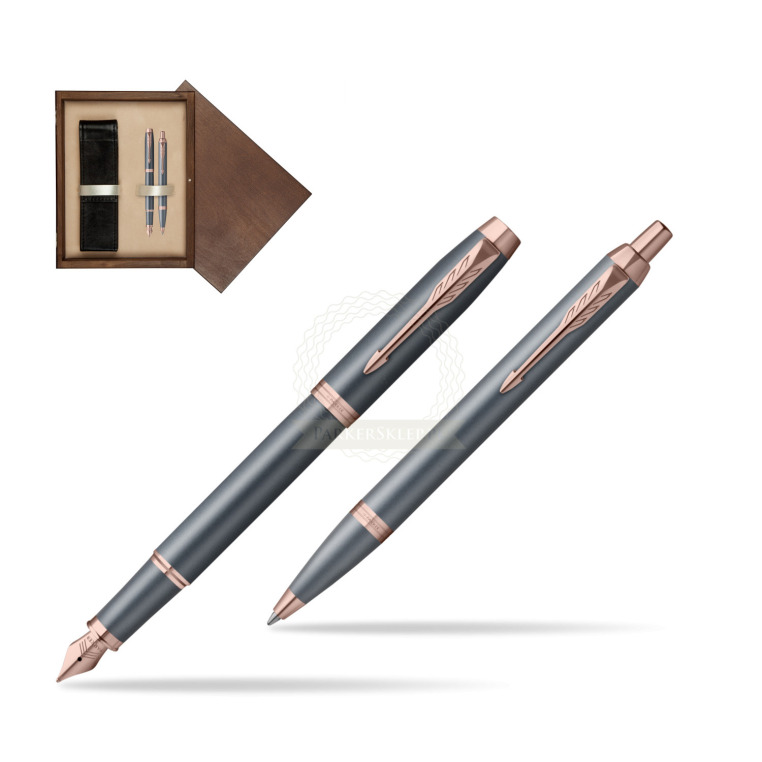Zestaw Parker Pióro wieczne + Długopis IM TURQUOISE SLATE w pudełku drewnianym Wenge Double Ecru IM