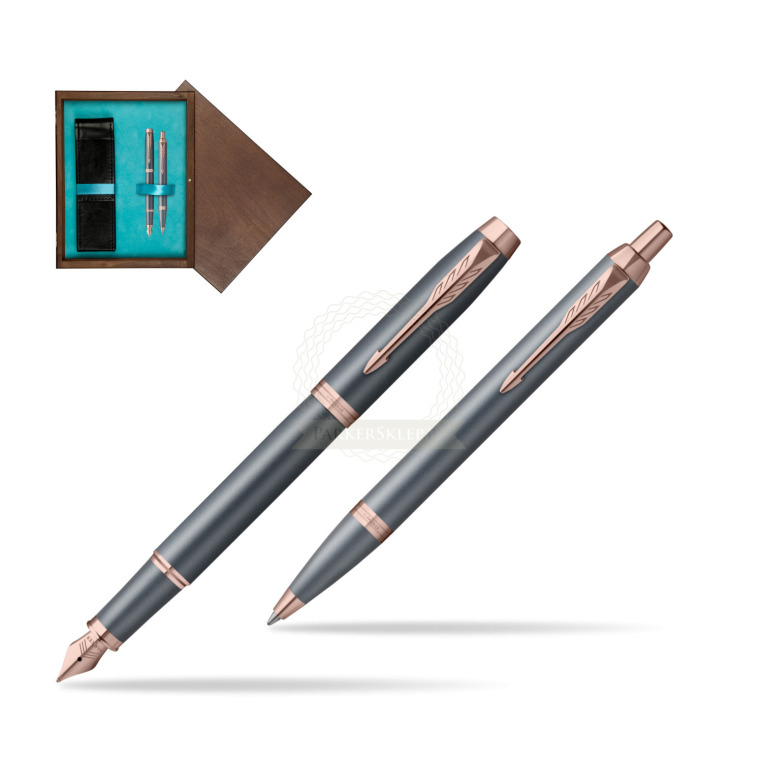 Zestaw Parker Pióro wieczne + Długopis IM TURQUOISE SLATE w pudełku drewnianym Wenge Double Turkus IM
